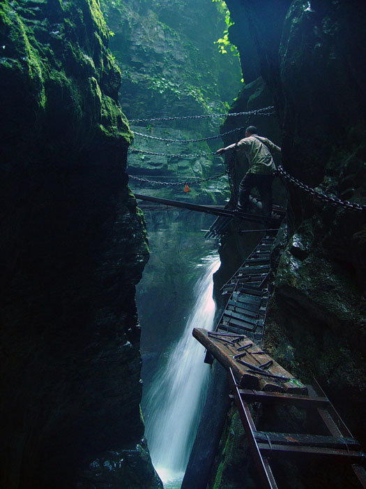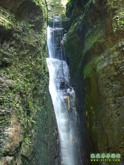 坐龍峽擁有中國第一條特種游道。所有游道均建于峽谷深處,依山取勢(shì),既經(jīng)細(xì)心雕琢聽卻又渾然天成。粗樸的板栗木棧道,可以讓你零距離的親近那一潭碧幽、聽聞山泉叮咚;精巧的跳墩,可以讓你媳戲流泉、觸感溪瀑;原質(zhì)的石坎道,讓你不得不調(diào)動(dòng)全部的身心能量悉心攀援、感悟峽谷;有驚無險(xiǎn)的鐵梯,讓你伴著腳下轟鳴的溪水,在驚怵中體味一份快慰。 出口出的土家山寨,保留了古樸獨(dú)特的生活習(xí)俗。一塊臘肉就一口醇香的“苞谷燒”會(huì)讓你洗去所有的疲憊,在輕松中憨厚的主人向你講述過去強(qiáng)人出沒的故事