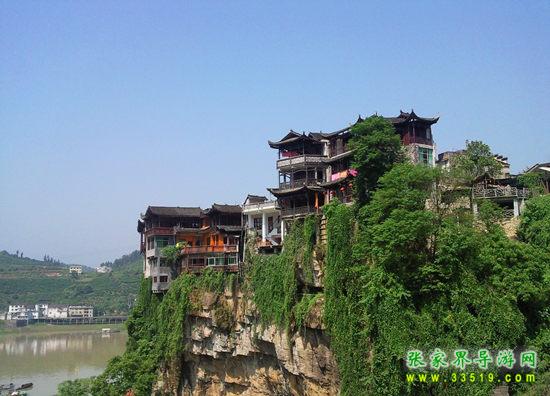 芙蓉鎮(zhèn)不僅是一個具有悠久歷史的千年古鎮(zhèn),也是融自然景色與古樸的民族風(fēng)情為一體的旅游勝地,又是猛洞河風(fēng)景區(qū)的門戶、一個尋幽訪古的最佳景點(diǎn)。四周是青山綠水,鎮(zhèn)區(qū)內(nèi)是曲折幽深的大街小巷,臨水依依的土家吊腳木樓以及青石板鋪就的五里長街,處處透析著淳厚古樸的土家族民風(fēng)民俗,讓游人至此贊不絕口,留連忘返。胡績偉先生游覽猛洞河和王村以后作詞贊道:“武陵山秀水幽幽,三峽落溪州。懸崖壁峭綠油油,悠悠蕩華舟。烹鮮魚,戲靈猴,龍洞神仙游,芙蓉古鎮(zhèn)吊腳樓,土家情意稠。”