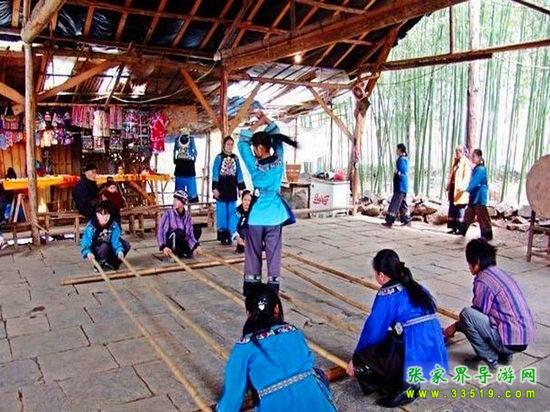 進入鳳凰香爐山苗寨必須過三道關(guān):一是去剿匪,二是對山歌,三是喝三碗米酒。如果過不了這三道關(guān),是不能進寨子的。剿匪就是過一道山洞(當年土匪躲藏的地方),也就是拍攝電影《湘西剿匪記》的現(xiàn)場,洞內(nèi)驚險崎嶇,道路難走,還要過一條河,河面上的橋是用小木板釘成,僅一米寬,上面滴水,橋上很滑,橋下流水很急。