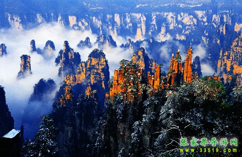 索溪峪風景區(qū)索溪峪,西南緊連張家界,西北毗鄰天子山,面積一百四十七平方公里,有景點二百多處。索溪峪山、水、洞自成一體 ,奇峰起伏錯成趣;水,泉清瀑美,千姿百態(tài);洞,幽深神秘,其妙無比。那恍若仙境的地下宮殿黃龍洞,天然浮雕羅列、充滿詩情畫意的十里畫廊,碧波蕩漾的寶峰湖,充滿傳奇色彩的百仗峽及太虛幻境般的西海云霧,一剛一柔、形態(tài)風格迥異的鴛鴦瀑 無不令人流連忘返。遠在明代中葉,就有人在巖壁題詩贊曰: “高峽百丈洞云深,要識桃源此處尋。”