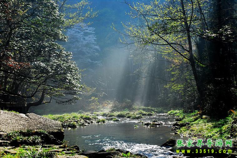 武陵源水繞山轉(zhuǎn),據(jù)稱僅張家界就有“秀水八百”,眾多的瀑、泉、溪、潭、湖各呈其妙。金鞭溪是一條十余公里長(zhǎng)的溪流,從張家界沿溪一直可以走到索溪峪,兩岸峽谷對(duì)峙,山水倒映溪間,別具風(fēng)味。水使山林更有生氣,金鞭溪是一條長(zhǎng)長(zhǎng)的溪流,有十幾公里長(zhǎng),從張家界沿溪一直可以走到索溪峪,它潺緩地流過紙草潭、跳魚潭、楠木坪和天子洲,最后由索溪峪注入澧水。兩岸峽谷對(duì)峙,紅巖綠樹倒映溪間。走在溪邊小徑上,一路清涼沁人心脾。踏木橋石階,觀花斑魚潭戲水,聽布谷鳥的叫聲在山谷間回蕩。