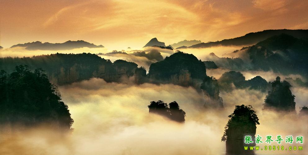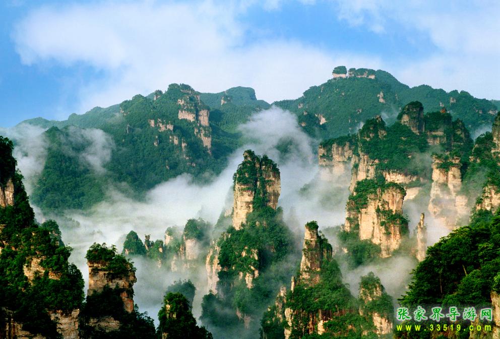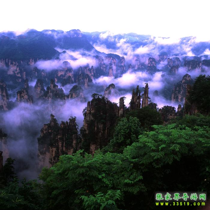 武陵源獨(dú)特的石英砂巖峰林在均屬國(guó)內(nèi)外罕見,在360多平方公里的面積中,目前所知有山峰3000多座,這些突兀的巖壁峰石,連綿萬(wàn)頃,層巒疊嶂。每當(dāng)雨過轉(zhuǎn)晴或陰雨連綿天氣,幽幽山谷中生出了云煙,云霧飄緲在層巒疊嶂間,云海時(shí)濃時(shí)淡,石峰時(shí)隱時(shí)現(xiàn),景象變幻萬(wàn)千。霧,使晴日下堅(jiān)硬的山峰變得妖嬈、飄逸和神秘。觀霧的最好季節(jié)是夏季,天子山是賞霧的最佳去處,也是攝影家常常涉足的地方。