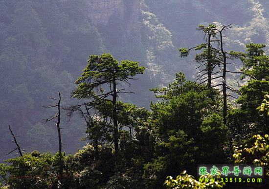 武陵源植物資源十分豐富:在眾多的植物中,武陵松分布最廣,數(shù)量最多,形態(tài)最奇,有“武陵源里三千峰,峰有十萬(wàn)八千松”之譽(yù)。