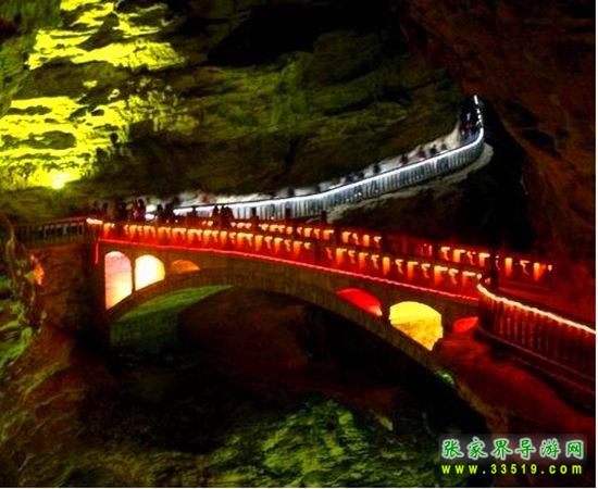 橋長22米,橋面寬3米,距水面17米,這是我國游覽洞穴中最大的石拱橋,是為迎接1995年國際溶洞會(huì)議在黃龍洞召開而修建的。橋的欄桿全部用當(dāng)?shù)氐?ldquo;土特產(chǎn)”木紋石建造。
