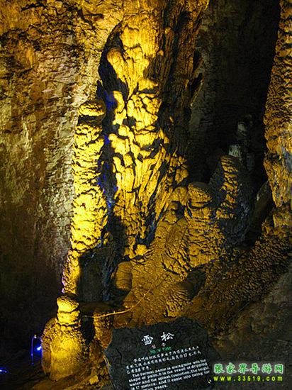 “大雪壓青松,青松挺且直。要知松高潔,待到雪化時(shí)。”這根高大的石筍就像一棵被大雪覆蓋得嚴(yán)嚴(yán)實(shí)實(shí)的松樹。它的科學(xué)名稱叫做棕櫚狀石筍,一般只能在高大的廳堂中見到。據(jù)科學(xué)家測算,它已經(jīng)在悠悠的歷史長河中挺立了10萬年。有趣的是,在雪松根部還散落著許多可愛的小松果呢!