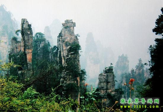 數(shù)以千計的奇峰怪石拔地而起森列谷中。在建筑師看來,石峰如塔、如柱、如屏、如樓、如堡、如墻,鱗次節(jié)比、錯落有致,展現(xiàn)了一幅宏偉的建筑藍圖;在藝術家看來,石峰似人、似佛、似鳥、似獸、似花、似樹,似瓊樓玉宇,生動逼真唯妙唯肖,似一幅彩色的畫卷;在軍事家看來,石峰是將、是兵,是鼓、是旗、是車、是馬,威武雄壯嚴陣待發(fā),象一支天降的軍隊。