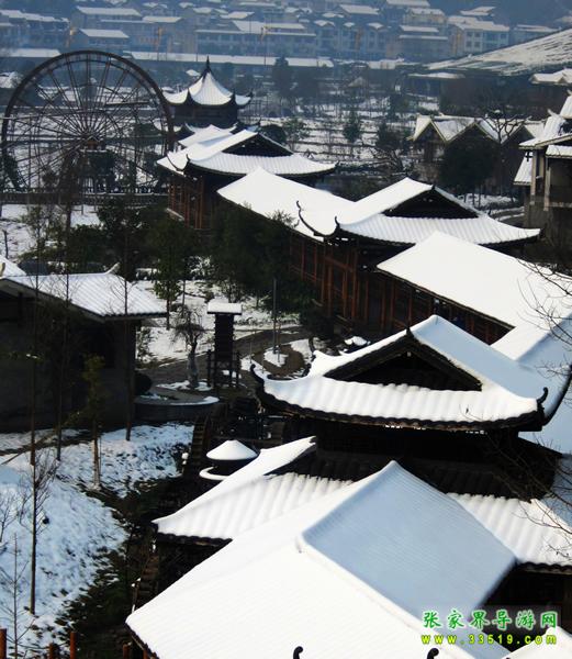 依山傍水而建的土家庭院,總面積有10826.7平方米,形成土家建筑群,分布了商鋪、茶樓、飯店、辦公區(qū)域。哈利路亞音樂廳是廣場中最大的建筑,它采用了全國獨一無二的斜屋坡面綠化,具有演藝和展示雙重功能,外墻裝飾有流線性的藝術(shù)美感,屋頂綠化與大自然相融,點綴著多色草木,色彩繽紛,形成了“空中花園”的自然觀感。
