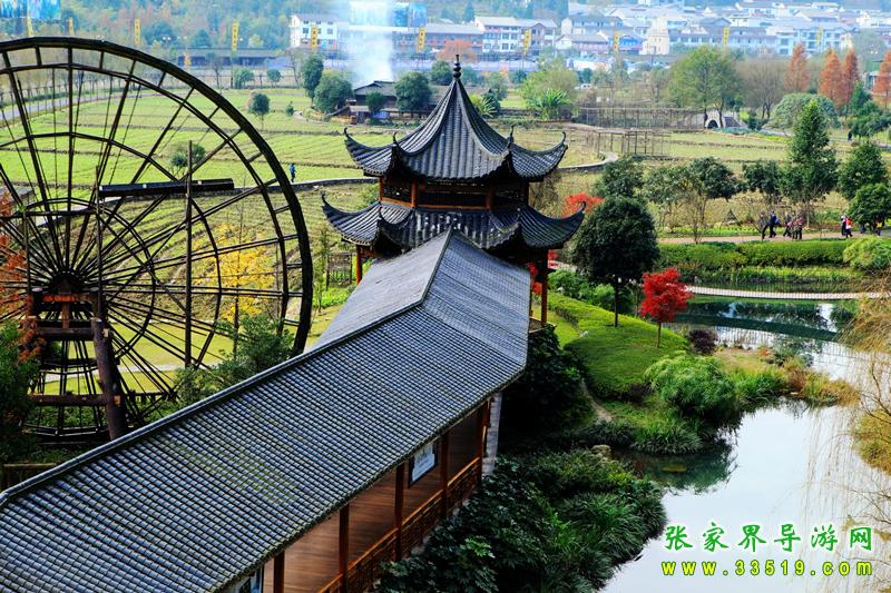 生態(tài)廣場共種植了近1600余株喬灌木,草皮、綠化工程共占地近3萬平方米,是廣場總面積的61%。香樟、桂花、紫薇等四季常青的樹木爭芳斗艷,是人們休閑時的綠色伴侶。田園風光與綠化景觀交相輝映,隔游道相望,農(nóng)田近2萬平方米,集中在廣場東南部,水稻、玉米及各類果蔬與農(nóng)舍、家禽、和平鴿的融合,串連著鄉(xiāng)村小路,讓鄉(xiāng)野韻味達到了極致。水車、石磨,還有蒼勁的風水樹仿佛將人們帶入了一個古老的世界,石拱橋、鐵索橋與斗拱建筑渾然一體,既有江南水鄉(xiāng)的柔美,又不失土家特色。