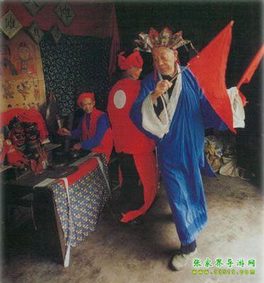 儺戲在湘西土家族地區(qū)也稱儺堂戲、儺神戲,它與土家族原始巫教、巫術(shù)的關(guān)系極為密切。土家族先民信奉的神有儺神、八部大神、土地神等,作為一種宗教活動(dòng),這種原始信仰與社會(huì)生產(chǎn)活動(dòng)、文娛活動(dòng)及民族習(xí)俗是融為一體的,因此儺戲最先的“沖儺還原”帶有明顯迷信色彩,土家族群眾中有“一儺沖百鬼,一愿了千神”的說法,湘西土家族人干脆叫它為“神戲”。湘西土家族儺戲的發(fā)展過程大體是儺、儺舞、儺儀然后才產(chǎn)生儺戲。儺舞源于久遠(yuǎn)的蒙昧?xí)r期,土家先民們在同大自然作斗爭、同毒蟲猛獸作斗爭,便產(chǎn)生了化裝護(hù)面、在鼓樂聲中奔騰呼號、沖殺跳躍的原始儺舞,其所模擬的鳥雀舞、猿猴舞、熊舞等頗為壯觀。儺舞與儺這種驅(qū)鬼消災(zāi)的祭祀儀式結(jié)合后,增加了祈求人獸平安、五谷豐登、緬懷祖先、勸人去惡從善、以及傳播生產(chǎn)知識等內(nèi)容,這就逐漸形成了兼?zhèn)潢U弘教義及娛樂性質(zhì)的祭祀風(fēng)俗歌舞。[2]土家族儺戲就是在此基礎(chǔ)上發(fā)展起來的。部分土家族學(xué)者認(rèn)為土家族儺戲的遠(yuǎn)源可以追溯到戰(zhàn)國時(shí)代的《九歌》,《九歌》是土家族儺戲的雛形,他們的依據(jù)是當(dāng)時(shí)楚國的沅湘流域,人們“信巫鬼、重淫祀”(《漢書·地理志》),從而使得“陰陽人鬼之間,又或不能無褻慢淫荒之雜”(宋代朱熹《楚辭集注》)。屈原正是加工整理了這一類“鄙陋”之詞,才創(chuàng)作出《九歌》、《天問》等名篇。也有部分學(xué)者不贊同這種論點(diǎn),他們認(rèn)為土家族儺在宋代還停留在儺祭和儺舞階段,最遲到明代,土家族儺才發(fā)展成為儺戲[3]。嘉靖《常德府志》記載:“歲除,歲將盡數(shù)日,鄉(xiāng)村多用巫師,朱裳鬼面,鑼鼓喧舞竟夜,名曰還儺。”文中未點(diǎn)明“儺戲”二字,但卻使用了“還儺”一詞,這與今天民間對儺戲的稱呼相似。又據(jù)清乾隆《永順縣志》載:“永俗酬神,必延辰郡巫師唱演儺戲,……至晚,演儺戲。敲鑼擊鼓,人各紙面一,有女裝者,曰孟姜女;男扮者,曰范七郎。”在土家族儺戲中,孟姜女傳說故事占著非常重要的地位。在湘西土家族地區(qū),儺戲一般有二十四正戲,即二十四戲神。每次儺儀結(jié)束時(shí),巫師要用香火在黃裱紙上燒二十四個(gè)洞,以表示奠祭二十四戲神。民間有諺語:“儺神菩薩不識字,只要二十四個(gè)圈圈滿。”在二十四儺神中,被稱為勾愿神的姜女、范郎是還儺愿時(shí)非常重要的兩位神靈。在儺戲中,《孟姜女》是整場的高潮,平時(shí),儺戲唱完后,由沒下裝的孟姜女、范郎去向主人家及觀眾“拜臺”,以示“了愿”。清代中期以后,儺戲吸取了花燈、陽戲、高腔等其他地方戲劇劇種的唱腔和劇目,逐漸變得日益成熟。我們仔細(xì)查看了全國371個(gè)劇種,發(fā)現(xiàn)儺戲、花燈戲有著相同的班社,也就是說一個(gè)演出班社可以演出儺戲、花燈戲兩個(gè)劇種。這段時(shí)期,儺戲已作為獨(dú)立戲劇劇種參加演出。由于儺戲是由巫儺法事演變而成的戲劇形式,經(jīng)歷著巫儺法事(驅(qū)鬼祭祀)、儺壇上戲和儺堂正戲的發(fā)展過程。