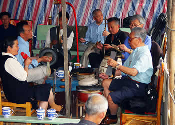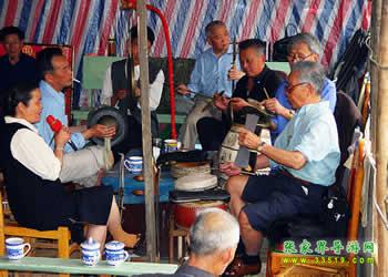 圍鼓(含嗩吶)。又稱打鎦子、打排鼓,是民間紅白會中不可缺少的樂器。一般7人演奏,樂器有一鼓、一大鑼、一公鑼、兩副鈸、兩嗩吶。其詞曲紅白會通用,以鼓和嗩吶上系紅、白布為分別標記(結婚不打“四字鈸”曲)。史傳的圍鼓詞有《撩子》、《火鋪》等,《撩子》分《一二三》、《閃翅》、《堆羅漢》、《反落花》等十章,《火鋪》也分《三槍》、《四進門》、《八哥洗澡》、《蓮魚吐絲》等十章,嗩吶詞有《八十正宮》調等。在農(nóng)村,圍鼓是最普及的樂器,每逢紅白喜事都有圍鼓和嗩吶表演。