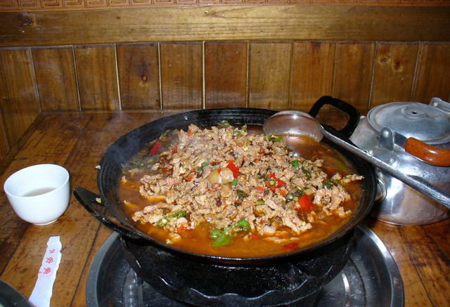 如果你想品嘗正宗的煙熏臘肉,還非得在張家界景區(qū)內(nèi)吃。在景區(qū)內(nèi)當(dāng)?shù)厝碎_(kāi)的小飯館里可以吃到被炭火烤得烏黑的香噴噴的臘肉,只要把外層洗掉就行了。這種臘肉在城里是不可能吃到的,它是在農(nóng)家的灶上慢慢烤出來(lái)的。
