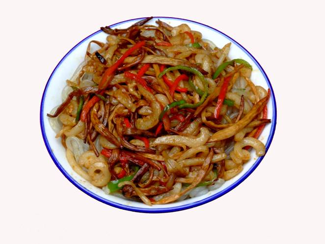 《張家界草帽面》。 這個(gè)名字的由來(lái)是因?yàn)槔习宄D甏髦菝辟u(mài)面,臊子非常香,可以添加,面是他自己加工的據(jù)說(shuō)是全手工的,老板人很古怪,每天只賣(mài)那么一點(diǎn),以前更古怪,只有星期1、3、5的晚上9點(diǎn)才有賣(mài),想吃他家的草帽面居然還得跟他打電話問(wèn)他是否心情好,出不出來(lái)賣(mài)面?預(yù)約了才不會(huì)撲空。但是就因?yàn)檫@點(diǎn)神秘,所以他家的面有些神話色彩。在汽車(chē)站口百貨大樓東門(mén)對(duì)面的巷子口,一輛板車(chē)上面掛了一頂草帽,那就是了,不過(guò)每天下午1點(diǎn)左右就沒(méi)了,要吃啊,嘿嘿,您趕早!能不能吃的上,得看您造化咯!