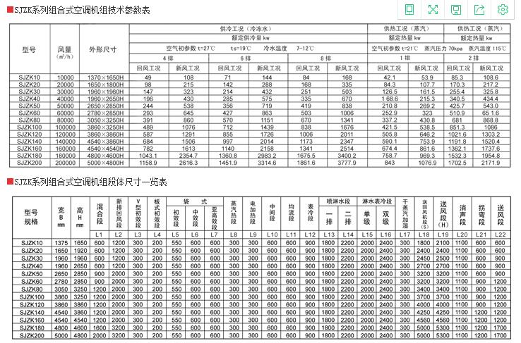 SJZK系列組合式空調(diào)機(jī)組,是一種以冷凍水為冷媒,以熱水或蒸汽為熱媒,以功能段為組合單元的中央空調(diào)設(shè)備,能完成空氣的混合、 過(guò)濾、凈化、殺菌、輸送、冷卻、加熱、去濕、加濕、消聲等功能。組合式空調(diào)機(jī)組廣泛應(yīng)用于電子儀表、精密機(jī)械制造、紡織、化纖、卷 煙、制藥、醫(yī)療、食品、化妝品、火電站、核電站、輕化工、賓館、展覽館、辦公樓、倉(cāng)庫(kù)、商場(chǎng)、娛樂場(chǎng)所、潔凈室、醫(yī)院、實(shí)驗(yàn)室、學(xué) 校、圖書館、會(huì)議室、食堂、餐廳、計(jì)算機(jī)房等行業(yè)和場(chǎng)所;形式多樣、型號(hào)齊全,申江空調(diào)采用空調(diào)技術(shù)和設(shè)計(jì)構(gòu)思,以科 學(xué)嚴(yán)謹(jǐn)?shù)墓ぷ鲬B(tài)度和研究開發(fā)手段生產(chǎn)能滿足各種條件、型號(hào)齊全、結(jié)構(gòu)型式多樣的組合式空調(diào)機(jī)組,本公司生產(chǎn)的組合式空調(diào)機(jī)組 包括標(biāo)準(zhǔn)型組合式空調(diào)機(jī)組、組合式凈化空調(diào)機(jī)組及各種特殊規(guī)格型號(hào)的組合式空調(diào)機(jī)組。本公司生產(chǎn)的組合式空調(diào)機(jī)組具有外型美觀、熱 交換效率高、結(jié)構(gòu)合理、強(qiáng)度好、漏風(fēng)率低、噪音低、運(yùn)轉(zhuǎn)平穩(wěn)、良好的防冷橋措施、保溫效果好、安裝維護(hù)保養(yǎng)簡(jiǎn)單方便、安全可靠等特 點(diǎn),適合各種舒適性中央空調(diào)系統(tǒng)和潔凈空調(diào)系統(tǒng)使用;特殊要求:為滿足不同客戶的需求,本公司隨時(shí)提供非標(biāo)準(zhǔn)或特殊配置機(jī)型的性能 參數(shù)和外型尺寸;為滿足客戶對(duì)機(jī)組控制的不同要求,可根據(jù)客戶的需求提供啟動(dòng)控制系統(tǒng)、自動(dòng)控制系統(tǒng)。