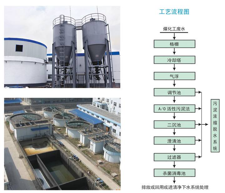 本公司根據(jù)設(shè)計(jì)標(biāo)準(zhǔn)和規(guī)范和工程實(shí)踐,開發(fā)出煤化工廢水處理工藝。該工藝具有流程適應(yīng)性強(qiáng)、操作簡單、投資少、耗水低優(yōu)點(diǎn)。